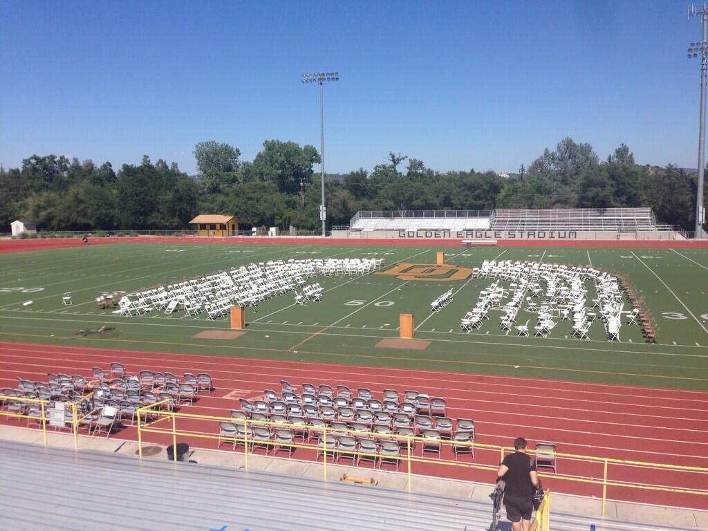 The ceremonies began at 9 a.m. at Golden Eagle Stadium which by that time saw temperatures already rising to over 90 degrees. Fifteen minutes later the Loomis Fire Department received calls about people passing out at the ceremony. Fifteen people were treated for heat exhaustion and five people were hospitalized.