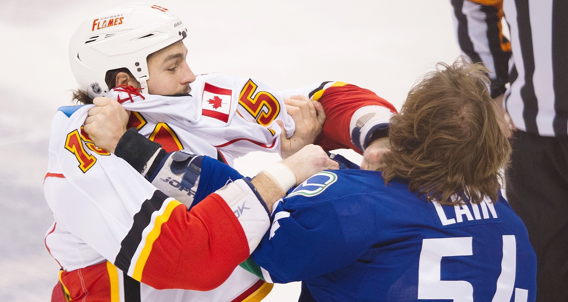 The Calgary Flames and Vancouver Canucks wasted no time in pummeling one another as they faced off on Saturday at Rogers Arena in Vancouver. The Flames had started their fourth line which raised red flags as the Canucks countered with their fourth line. Two seconds into the game, both teams exchanged blows and it was rumble time. The result was 142 penalty minutes and eight ejections between the two teams. Even Canucks coach John Tortorella went as far as trying to confront the Flames’ dressing room following the first intermission.