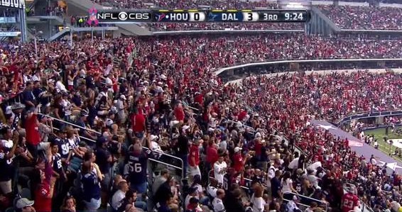 If you don’t know what I am talking about,the Dallas Cowboys despite their 4-1 record have had some trouble getting their own fans to come to games. In the home opener against the 49ers, the crowd was almost half 49ers fans. Fast forward to Sunday against the Texans, a 20-17 Cowboys win in overtime, a lot of Texans made the trip to North Texas.