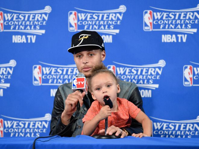 During this postseason, the NBA MVP and leader of the Warriors, Stephen Curry has brought his two-year old daughter,Riley with him at the podium during postgame press conferences. Many feel she’s been the star of the postseason with her cute and delightful performances.