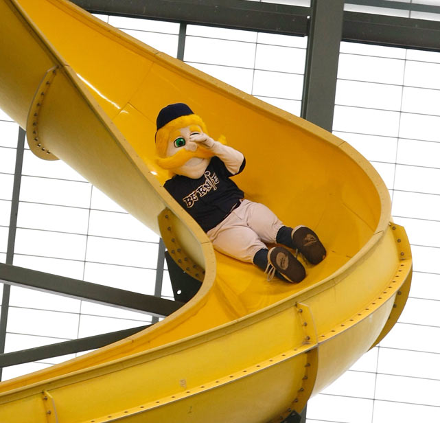 One of the few mascots I’ve heard of that went away and was demanded to be brought back by the fans. Bernie Brewer was created in 1973 and would slide into a giant mug of beer whenever a Brewer hit a home run at old County Stadium. In 1984, Bernie was retired when County Stadium underwent renvoations. Fans voted for his return and in 1993 he was brought back and has continued his home run slide,although now at Miller Park he slides from his dugout (where he leads the cheers) on a yellow slide onto a platform in the shape of home plate in left field.