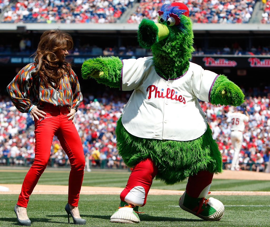 He is probably one of the most well known and popular mascots in sports. A green monster with an extending tongue,he is the Phillie Phanatic. Making his first appearance in 1978, the Phanatic is known for riding on his ATV shooting hot dogs out of a cannon, dancing on top of the Phillies dugout,dancing in front of the visiting team’s dugout and taunting them,warming up in the bullpen,and polishing the head of bald dudes. He can get nasty,but it’s all in fun even if some people who have tried to sue him don’t always feel that way.