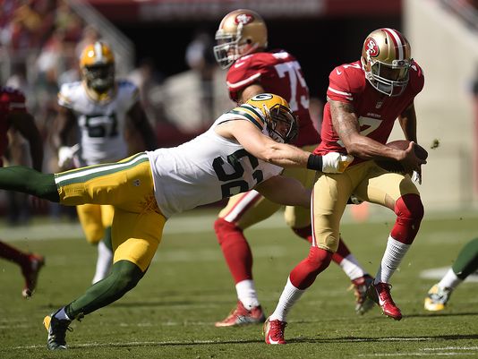 Colin Kaepernick and the San Francisco 49ers’ woes continue. After playing a tough first half and limiting the Packers to seven points, the 49ers could not capitalize on several red zone opportunities and Kaepernick was hearing it from everyone. From fans on social media. From the abundance of Packers fans who were in attendance at Levi’s Stadium (Seriously,that place sounded like Lambeau Field West yesterday), to the 49ers fans booing him at the stadium, to even Clay Matthews who told him on the field that ” You ain’t Russell Wilson,bruh!”. Matthews even imitated Kaepernick’s bicep kissing gesture once known as “Kaepernicking” back when he was still good.